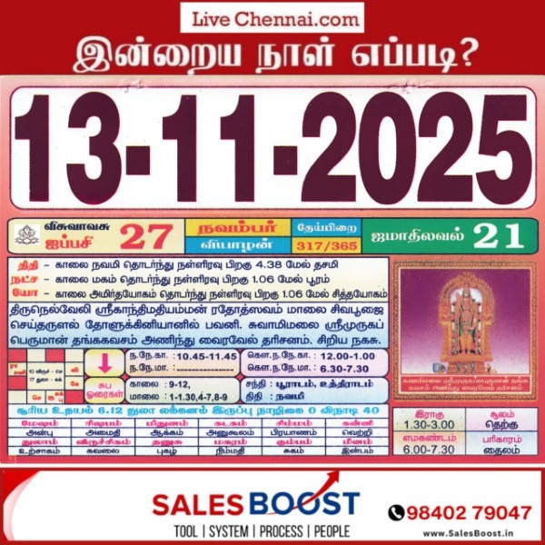 November 13, 2025 – Thursday | Aippasi 27 | Visuvavasu Year