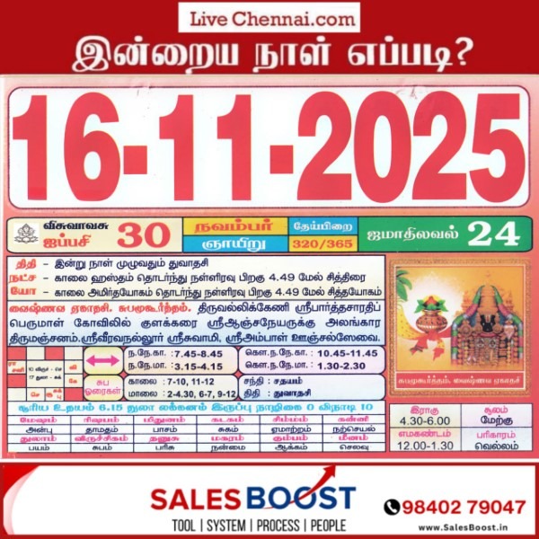 | November 16, 2025 – Sunday | Aippasi 30 | Visuvavasu Year | |||
