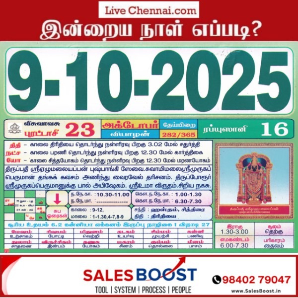 October 09, 2025 – Thursday | Purattaasi 23 | Visuvavasu Year