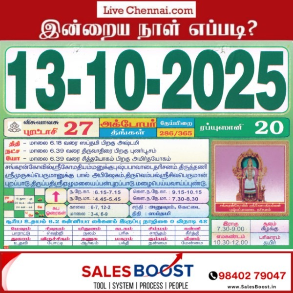 October 13, 2025 – Monday | Purattaasi 27 | Visuvavasu Year