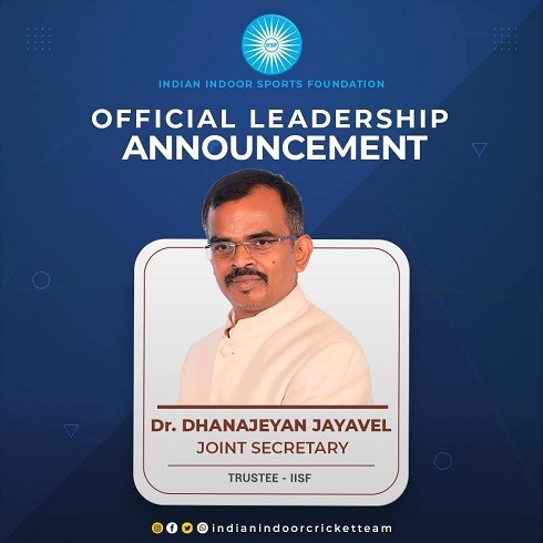The Indian Indoor Sports Foundation (IISF) has announced the appointment of Dr. Dhanajeyan Jayavel as its Joint Secretary.