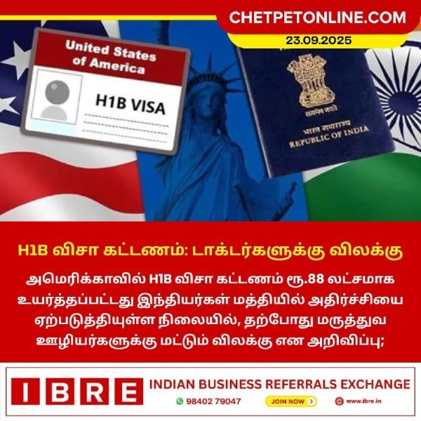 அமெரிக்காவில் H1B விசா கட்டணம் ரூ.88 லட்சமாக உயர்த்தப்பட்டது இந்தியர்கள் மத்தியில் அதிர்ச்சியை ஏற்படுத்தியுள்ள நிலையில், தற்போது மருத்துவ ஊழியர்களுக்கு மட்டும் விலக்கு என அறிவித்துள்ளது.