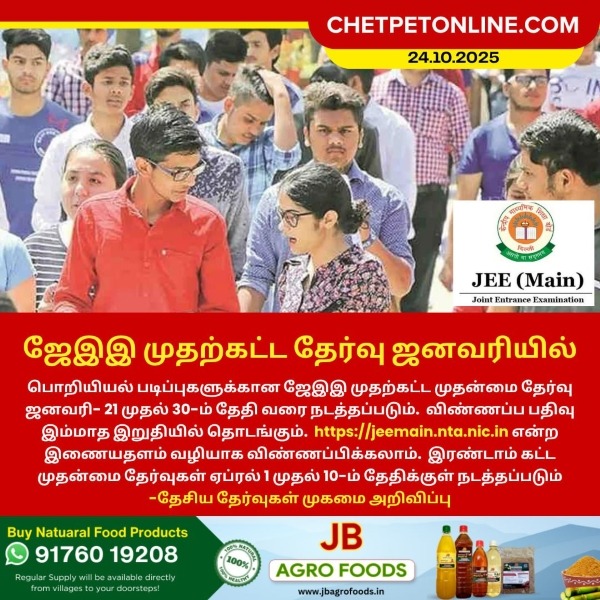 ஜேஇஇ முதற்கட்ட தேர்வு ஜனவரியில் – தேசிய தேர்வுகள் முகமை அறிவிப்பு!