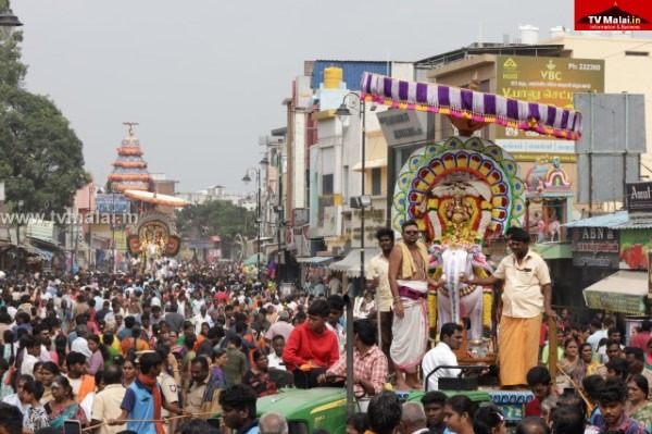 தீபத் திருவிழா ஆறாம் நாள், இன்று காலை வெள்ளி யானையில் சந்திரசேகரர் மாடவீதி உலா. 63 நாயன்மார்கள் உற்சவ மூர்த்திகளாக தனித்தனி வாகனங்களில் மாட வீதி வலம் வந்து பக்தர்களுக்கு அருள்பாலித்தார். இதில் ஏராளமான பக்தர்கள் கலந்து கொண்டு சாமி தரிசனம் செய்தனர்.