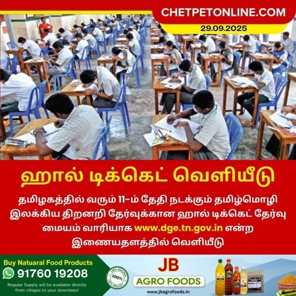 தமிழகத்தில் வரும் 11-ம் தேதி நடக்கும் தமிழ்மொழி இலக்கிய திறனறி தேர்வுக்கான ஹால் டிக்கெட் தேர்வு மையம் வாரியாக www.dge.tn.gov.in என்ற இணையதளத்தில் வெளியீடு.