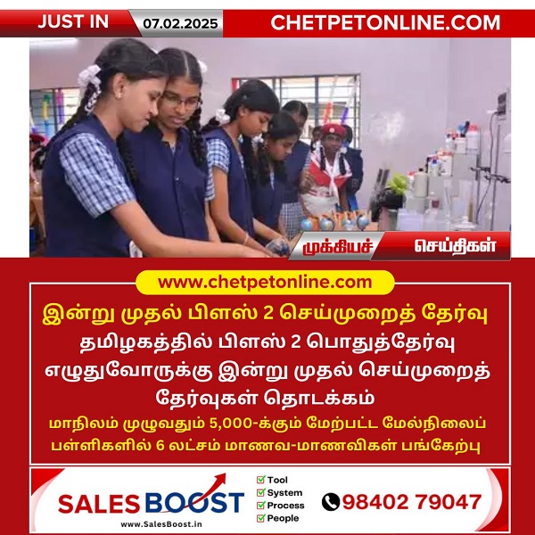 தமிழகத்தில் பிளஸ் 2 பொதுத்தேர்வு எழுதுவோருக்கு இன்று முதல் செய்முறைத் தேர்வுகள் தொடக்கம்