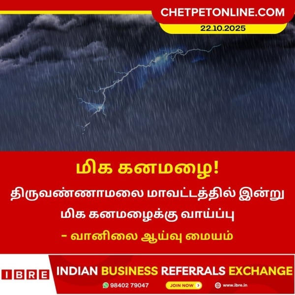 திருவண்ணாமலை மாவட்டத்தில் இன்று மிக கனமழைக்கு வாய்ப்பு என வானிலை ஆய்வு மையம் தெரிவிக்கப்பட்டுள்ளது.
