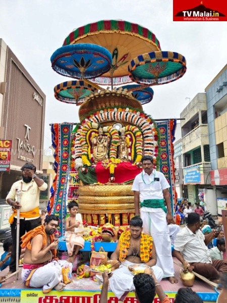 திருவண்ணாமலை அண்ணாமலையார் திருக்கோயிலில் திருக்கார்த்திகை தீபத் திருவிழா நான்காம் நாளான இன்று (27.11.2025) காலை விநாயகர் வெள்ளி மூஷிக வாகனத்திலும், சந்திரசேகரர் உண்ணாமுலை அம்மன் நாக வாகனத்திலும், பஞ்ச மூர்த்திகள் மாட வீதி வலம் வந்து பக்தர்களுக்கு அருள்பாலித்தார்.