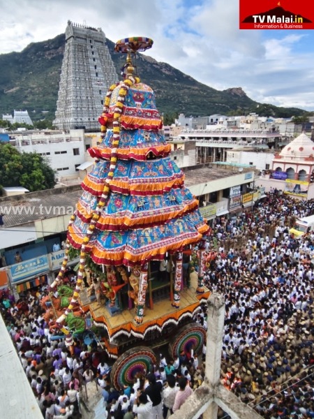 திருவண்ணாமலை அண்ணாமலையார் திருக்கோவிலில் கார்த்திகை தீபத் திருவிழா ஏழாம் நாள் பஞ்ச மூர்த்திகள் நாள் மகா தேரோட்டம் நடைபெற்றது. இதில் இலட்சக்கணக்கான பக்தர்கள் கலந்து கொண்டே தேரை வடம் பிடித்து இழுத்து சென்றனர்.