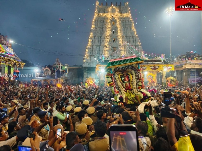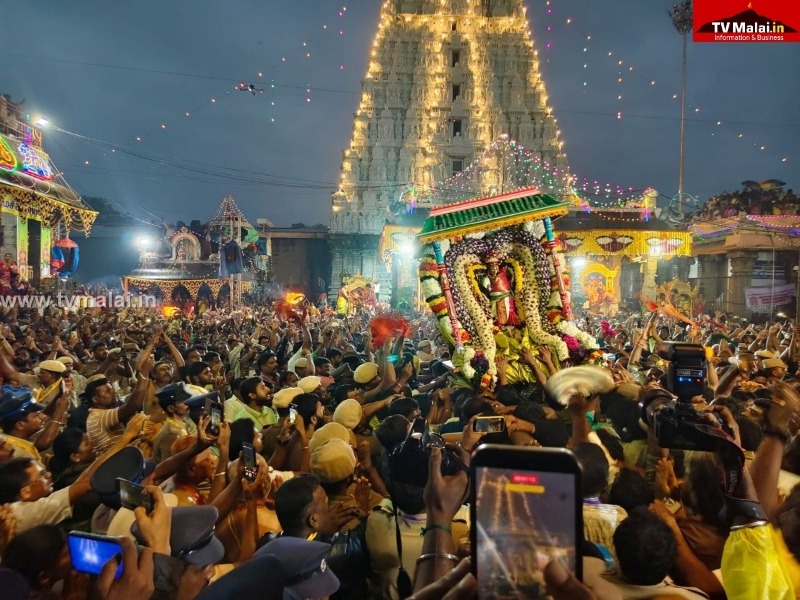திருவண்ணாமலை அண்ணாமலையார் கோவிலில் கார்த்திகை தீபத் திருவிழாவின் முக்கிய நிகழ்வான மகா தீபம் 2,668 அடி உயரமுள்ள மலை உச்சியில் (03.12.2025 ) மாலை 06.00 மணியளவில் மகாதீபம் ஏற்றப்பட்டது. “அரோகரா” முழக்கத்துடன் ஆயிரக்கணக்கான பக்தர்கள் மகாதீபத்தை தரிசித்தனர்.