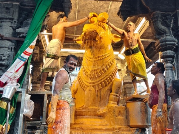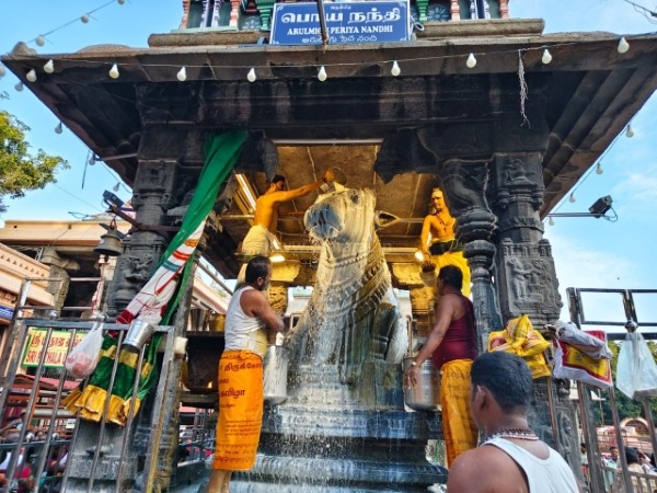 திருவண்ணாமலையில் அருணாச்சலேஸ்வரர் திருக்கோவிலில் நேற்று (17-12-2025) மார்கழி மாத அமாவாசை பிரதோஷத்தை முன்னிட்டு நந்தி பகவானுக்கு சிறப்பு அபிஷேக ஆராதனை நடைபெற்றது. இதில் திரளான பக்தர்கள் கலந்து கொண்டு அரோகரா கோஷத்துடன் தரிசனம் செய்தார்கள்.